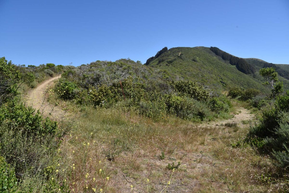 On the way down. You can see the Tree (Yellow Bush) Lupines here. These were all over, at the bottom and top of the trail, but not in the grassy flat. They smell so good!