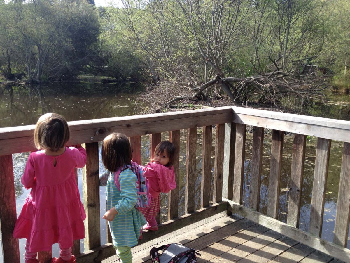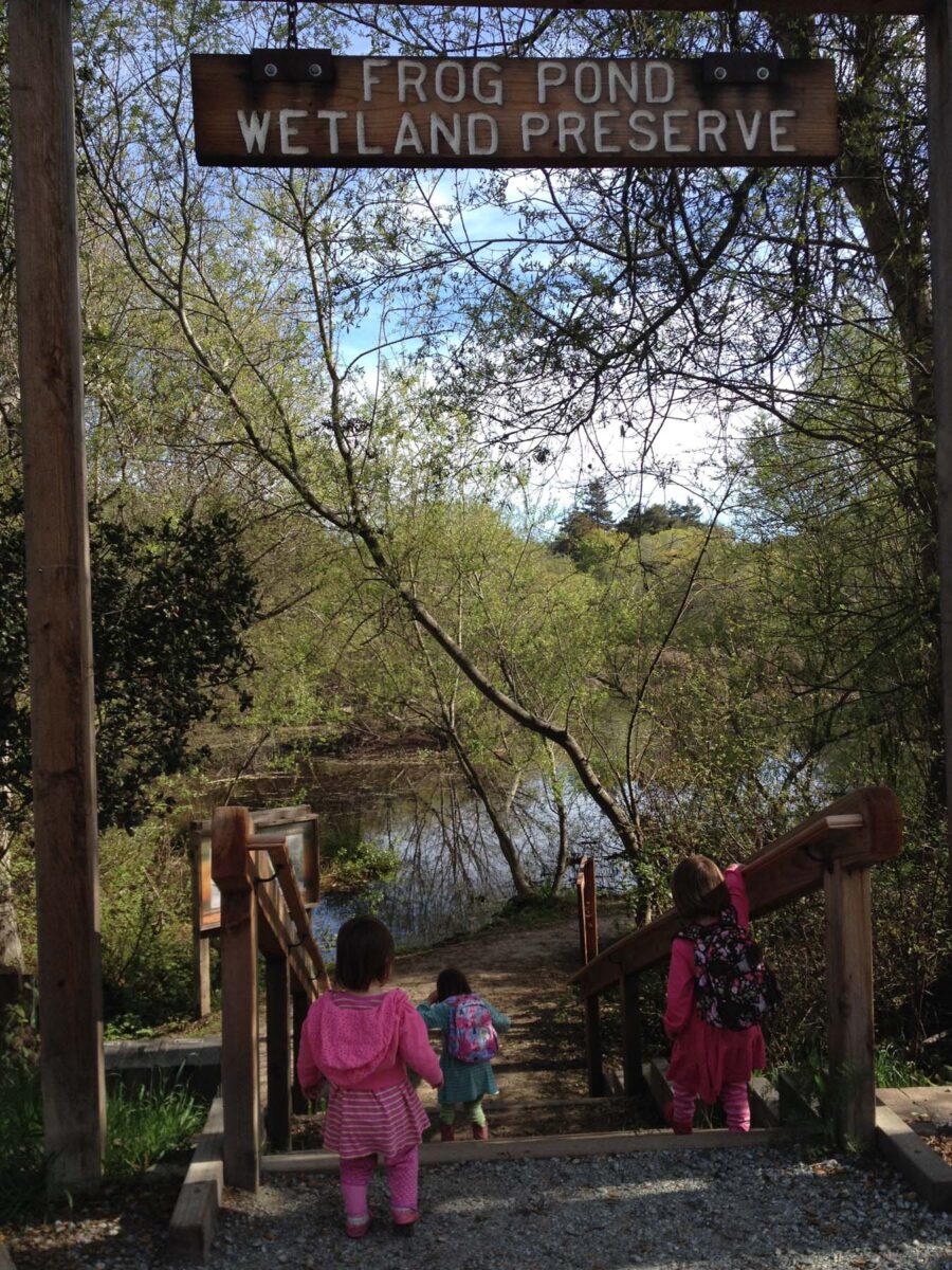 Two weekends ago, Shane and Caleb were at a Cub Scout function so the girls and I went on a hike. This is one of the best hikes I’ve taken the girls on. It’s a convenient location (about a 15 mins drive from Monterey), easy (flat and short) and surprisingly beautiful. I’ve driven by it so many times and never knew it was there. There is a sign that clearly stats “Frog Pond Wetland Preserve”, but you’d have to know when to turn your head to see it.