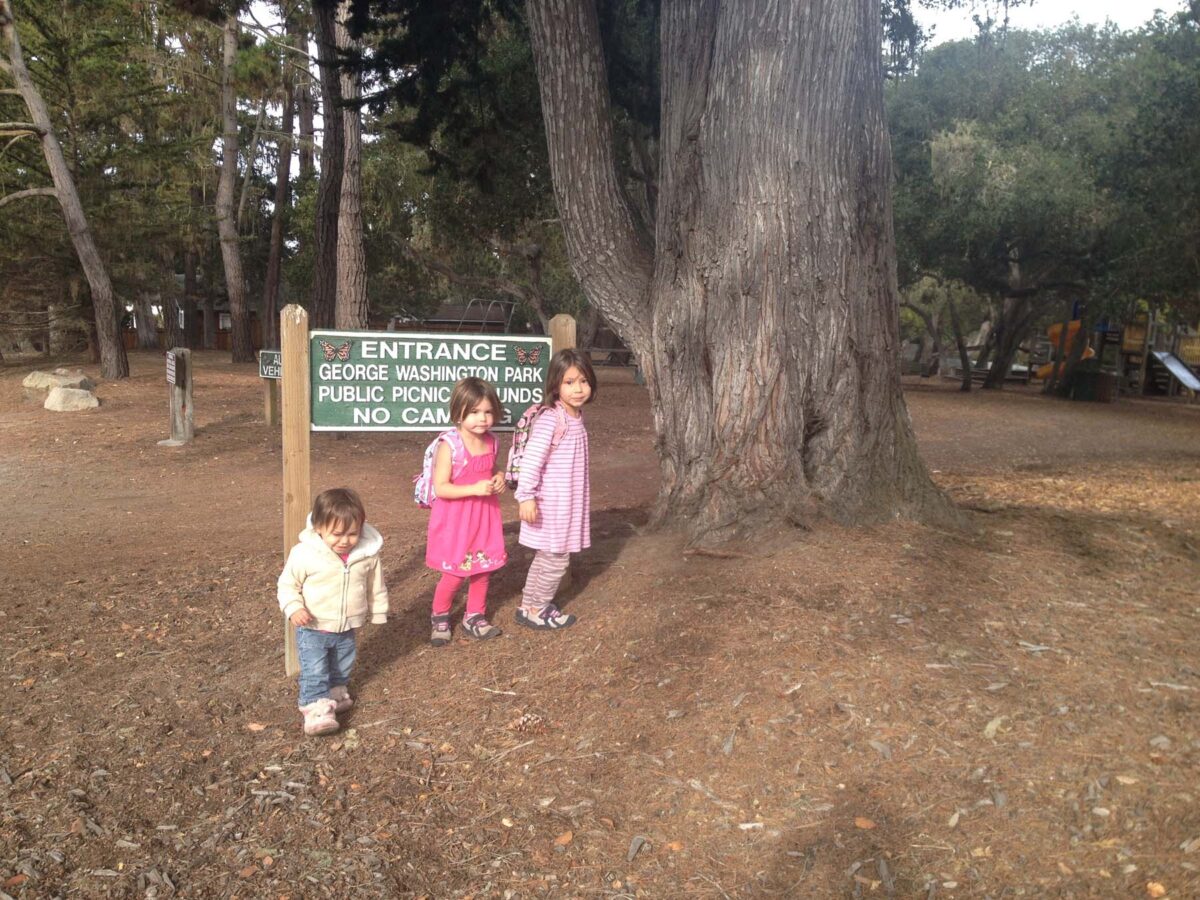 I took them to George Washington Park in Pacific Grove. This park has a series of flat, interconnecting trails that the girls had a lot of fun exploring. There is also a playground here, so perfect for little ones who are reluctant about hikes.