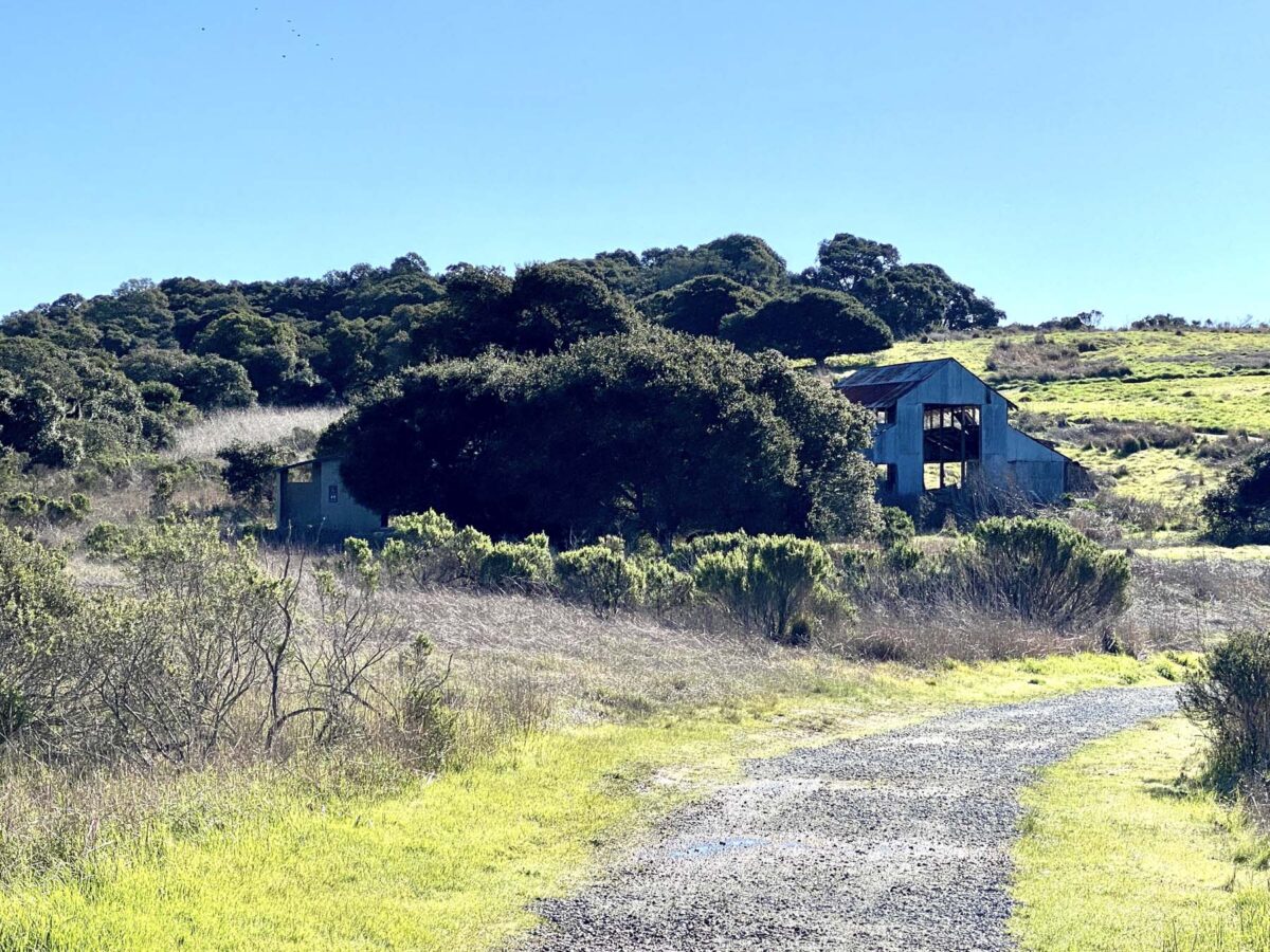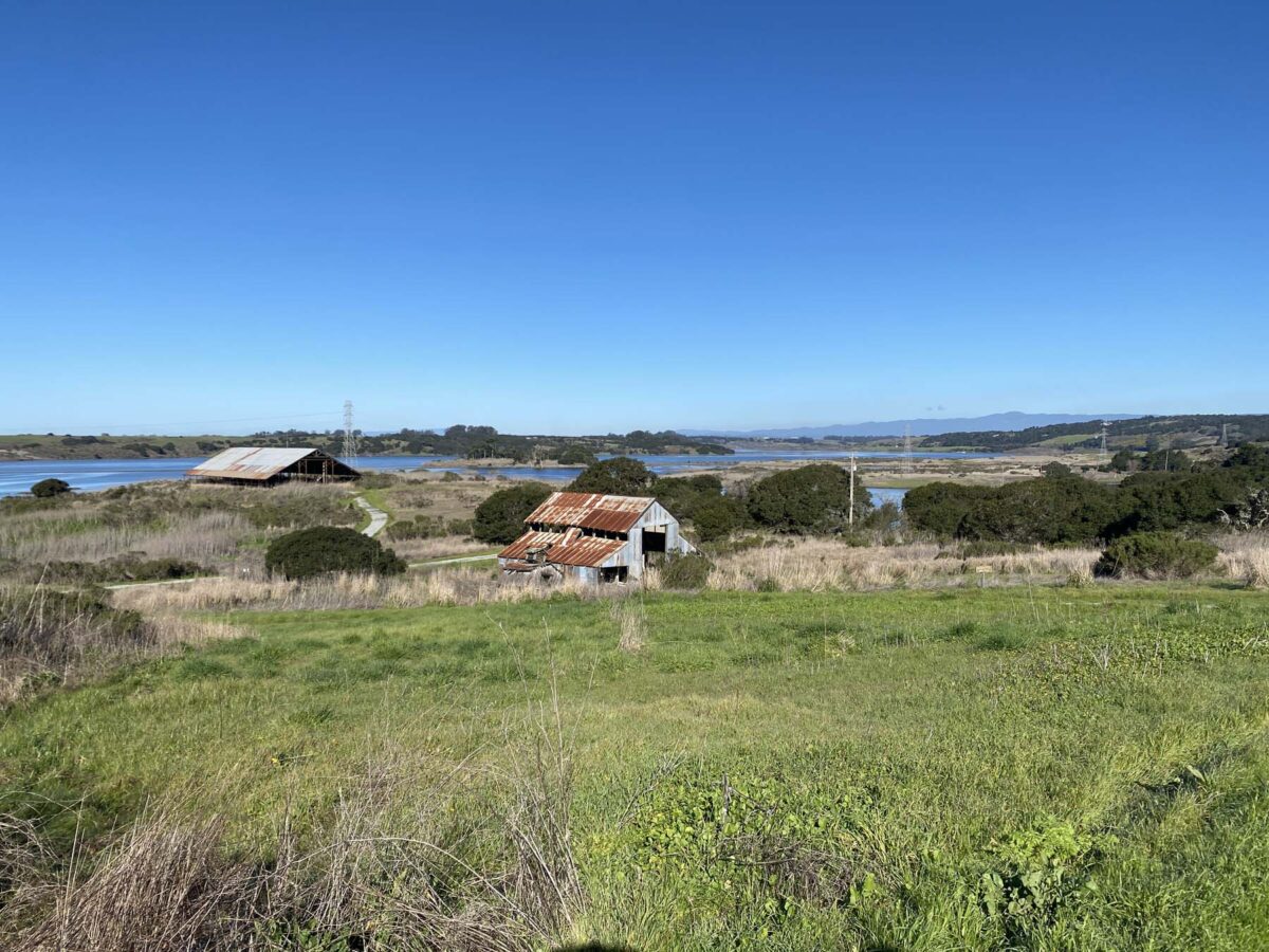 From the top of the hill, you can see Elkhorn Slough and two abandoned barns.